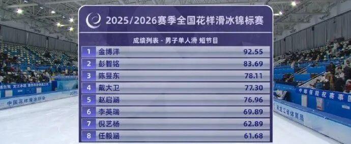 作为黑龙江培养的花滑名将,金博洋对全锦赛的这片场地非常熟悉,但他上一次在这个场馆比赛已经是2018年了。时隔7年,再度登上这片场地,金博洋的表现依然没有让人失望。92.55分,金博洋凭借这一分数,在全锦赛男单比拼中暂时领跑。彭智铭排名第二,陈昱东获得第三。12月28日将展开男单自由滑的比拼,决出男子单人滑最终名次,米兰冬奥会名额归属也将随之揭晓。