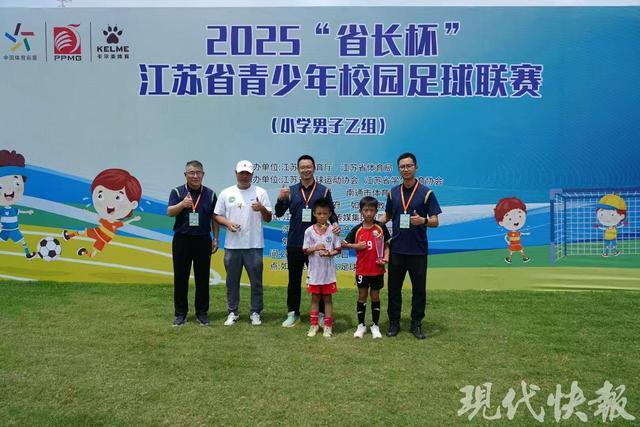 “好球!”“拿实力说话,踢”……8月底,中午11点的南京酷热难耐,但游府西街小学浦口分校的足球队队员们却在操场上奋力奔跑,上演着一场精彩的对决。这是他们近4年来的训练日常。今年6月,他们刚在2025“省长杯”江苏省青少年校园足球联赛中夺得小学男子乙组冠军。这支成立仅短短4年的校队,实现了从“区长杯”“市长杯”到“省长杯”冠军的“三级跳”。近日,现代快报记者走进校园,探秘“省长杯”冠军队崛起的秘诀。