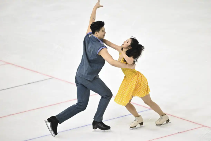 今天上午,冰舞韵律舞比赛率先进行。吉林省体育局冰上运动管理中心组合王诗玥/柳鑫宇以81.41分的成绩暂列第一,黑龙江省冰上训练中心选手任俊霏/邢珈宁以73.68分暂列第二,广东省黄村体育训练中心肖紫兮/何凌昊以70.90分的成绩暂列第三。