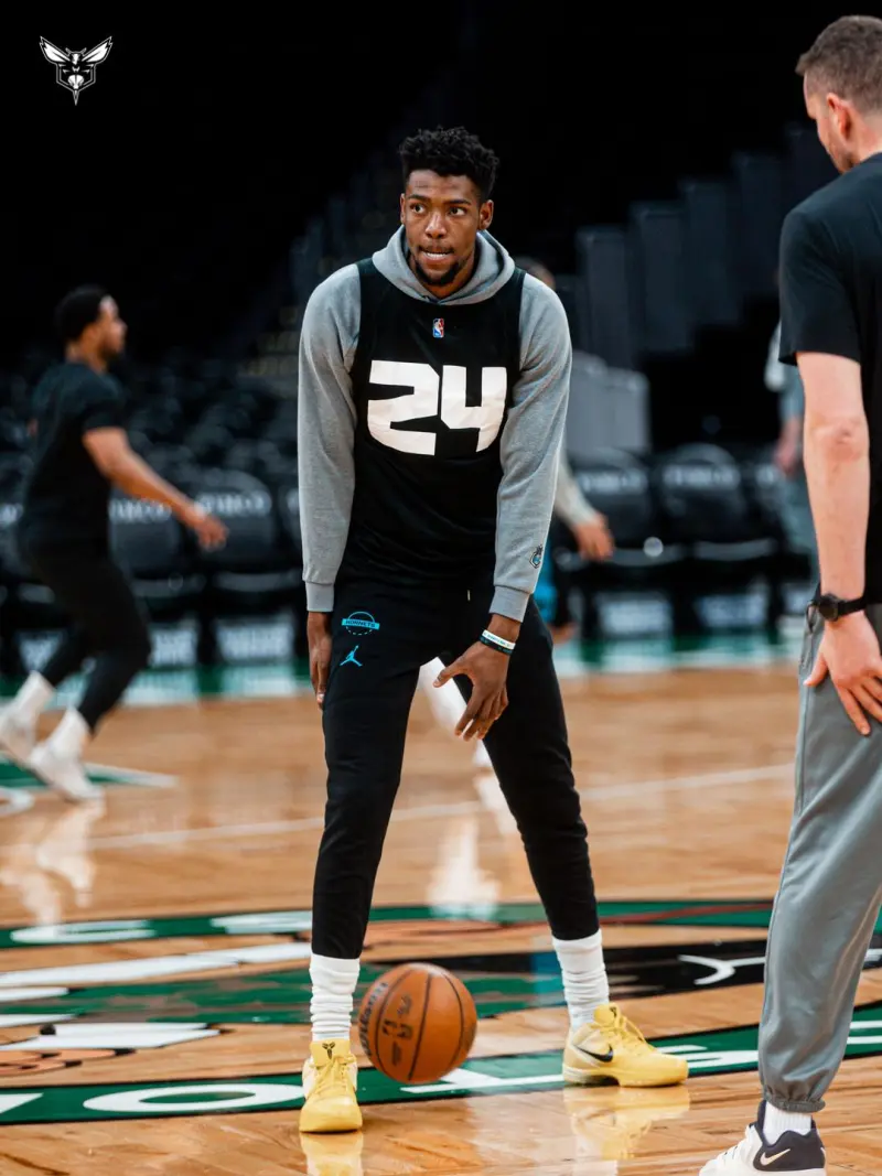 黄蜂官方更新了Instagram,晒出一组训练照并附文:“在TD花园投篮。”